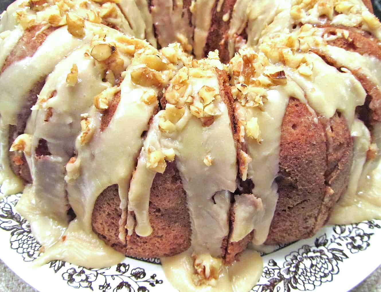 Caramel Apple Cake This Caramel Apple Cake is a classic Fall Bundt recipe; so moist and flavorful. The brown sugar glaze on top finishes it off perfectly.