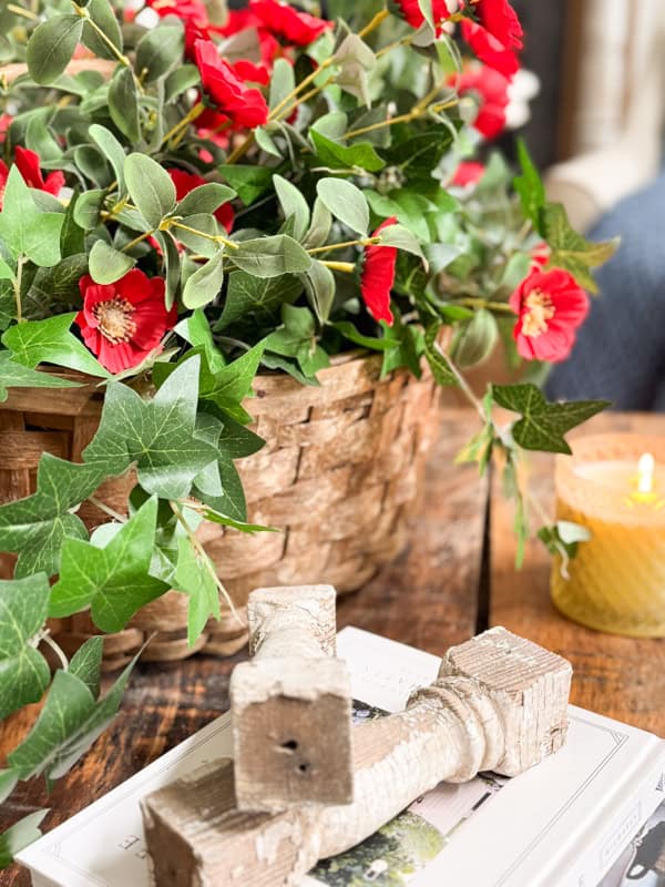Rachel, The Ponds Farmhouse, “3 Vintage Basket Centerpiece Ideas: Thrifted Planter Ideas and Beyond”