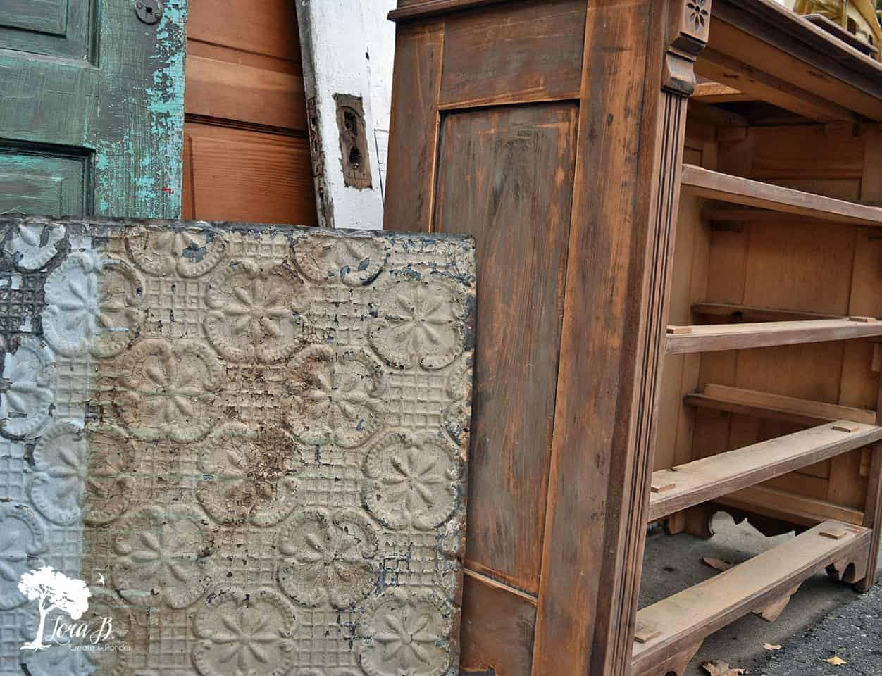 Gorgeous Green Painted Dresser Makeover Green painted dresser makeover DIY before and after with vintage tin ceiling accents.
