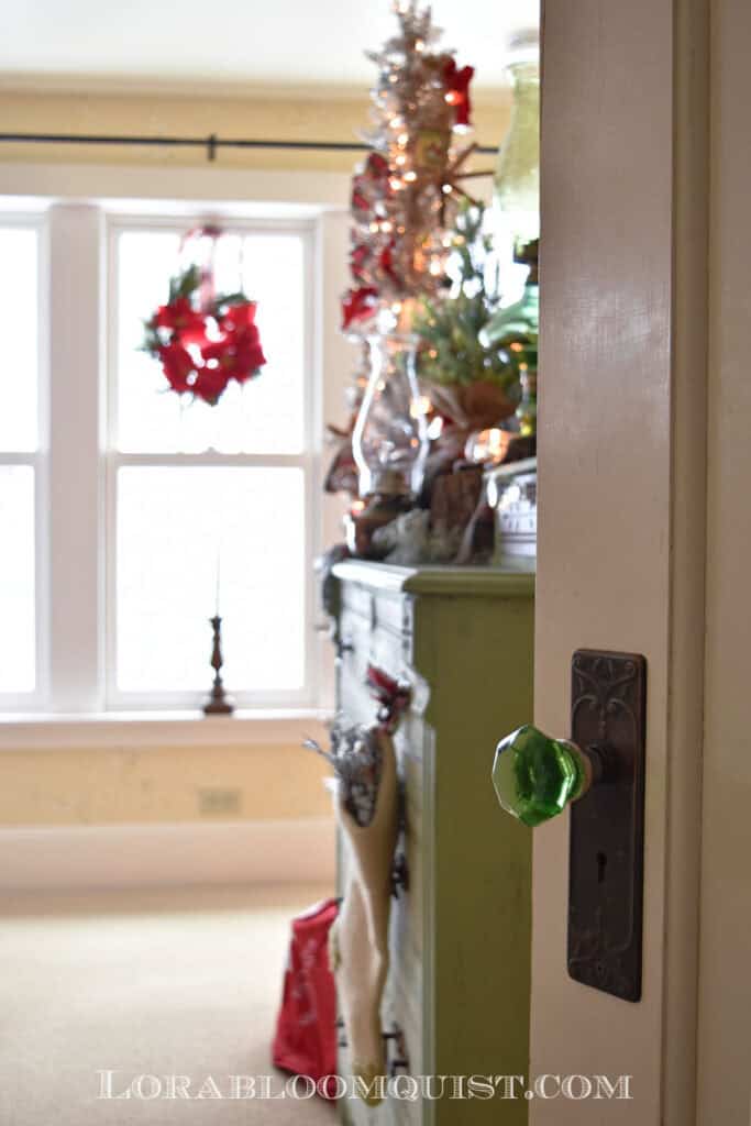 If installing old doors in your home isn’t your thing, how about upcycling old doors into unique decor? Because I find many old doors curbside for free, we upcycled a couple of them into eclectic door trees I use at Christmas. Vintage hardware adds the cherry on top for a little old style bling.