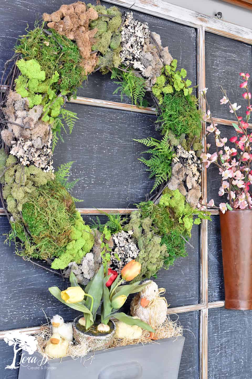 Old Window Chalkboard Spring Display Repurpose an old window into a chalkboard backdrop for a spring display.