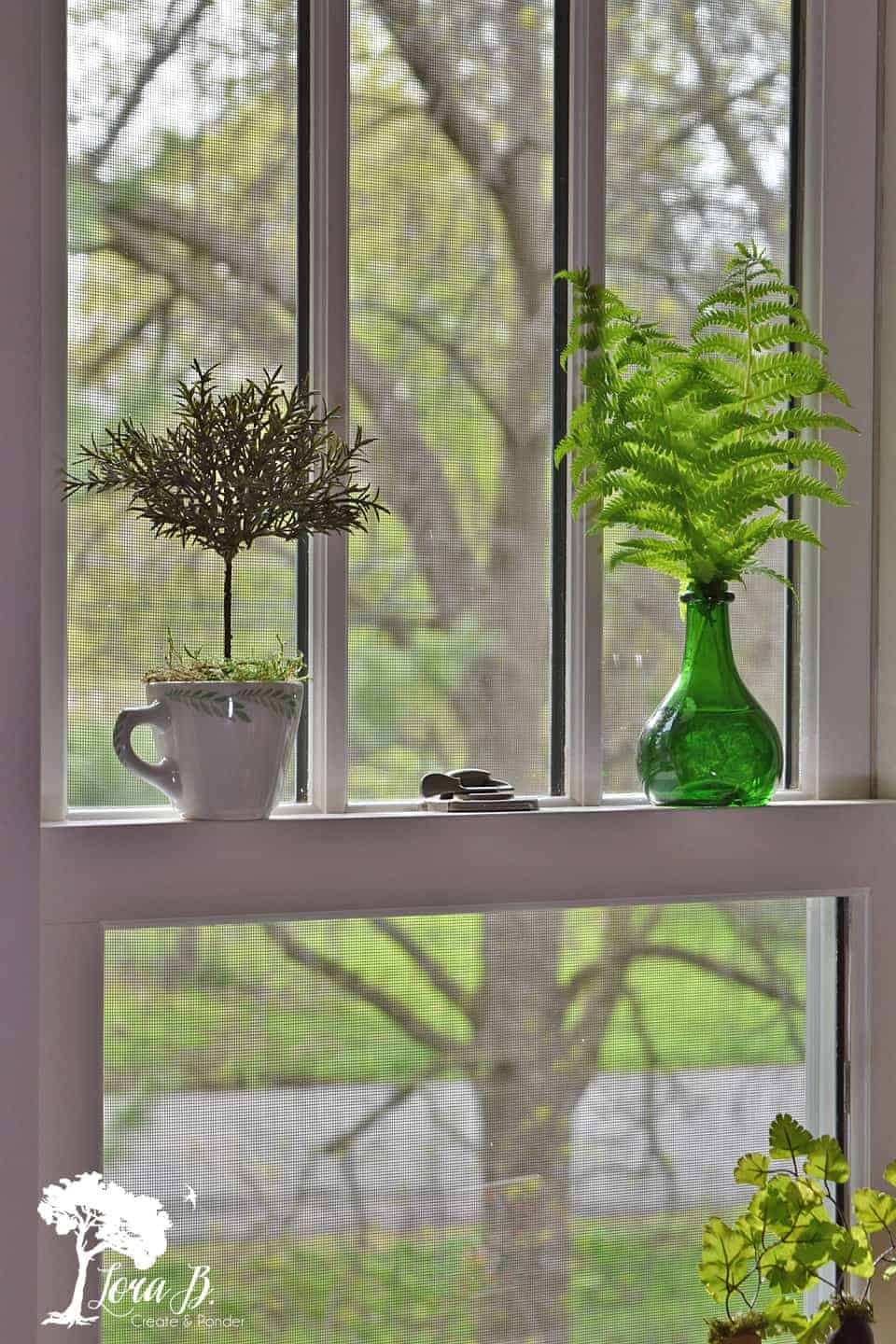 Fresh flowers or foliage always bring me contentment. I love having a beautiful view out the windows and watching the squirrels and birds in our big pine tree. Even when the speeding cars drive by, a couple of snips from the yard or a few flowers from the grocery store bring peace to my soul. When the technology struggle challenges me, having pretty things by my side enables me to push forward.