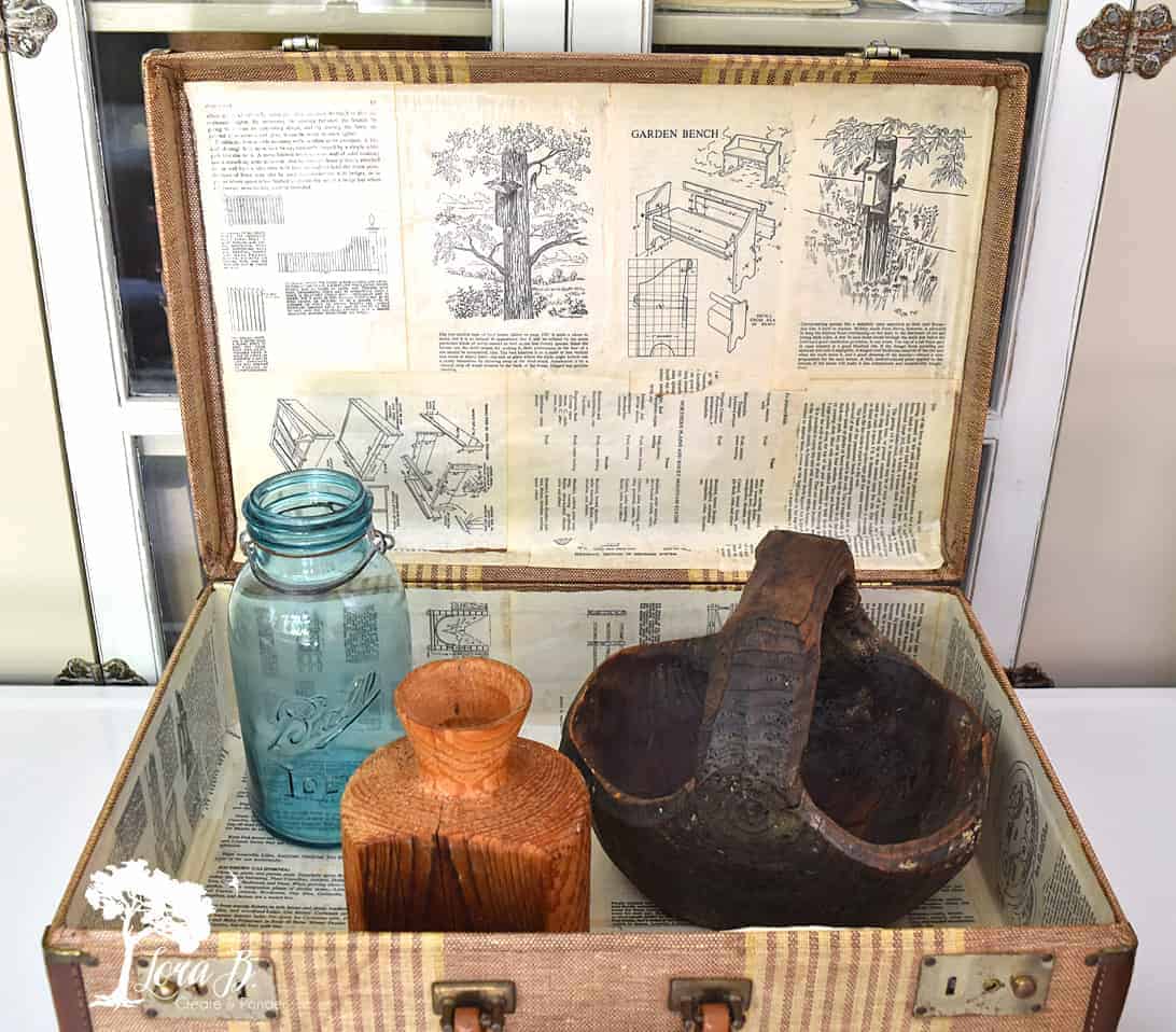 5 Simple Steps to a Fun Vintage Suitcase Vignette Here are 5 simple steps to creating a fun vignette in a vintage suitcase. Unique home decor accent and great repurpose.