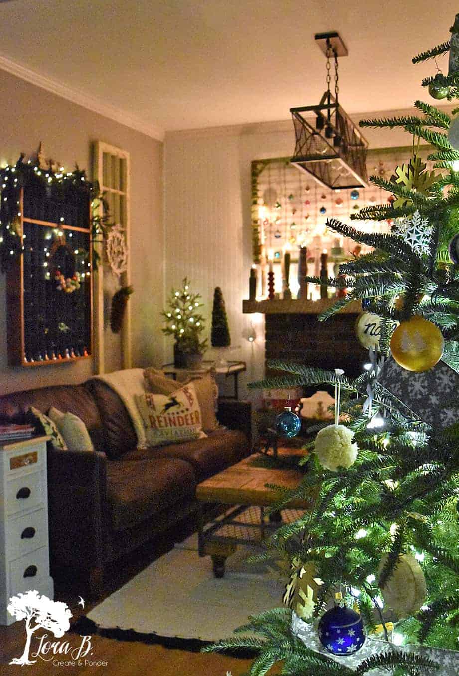 Very Vintage Christmas Decor at Night Tour Christmas decor at night tour, full of vintage, repurposed DIY projects and Shiny Brite ornaments.