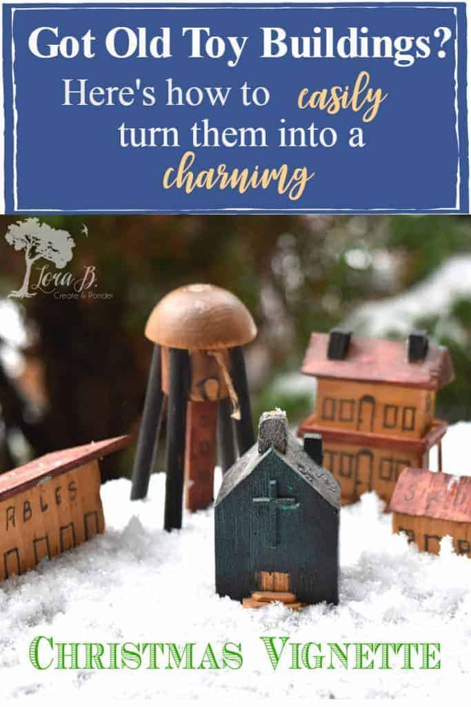 Lora, your talent for repurposing lost items never ceases to amaze me. Your little village is just delightful and I’m so glad you gave it a new and happy purpose. I love how you added the little buildings to the tray with greenery too. So cute! Pinned!